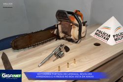Motoserra recuperada, revólver apreendido, e 04 pessoas no Boa Vista Araxá.