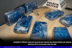 Homem é preso com 08 quilos de crack na rodoviária de Araxá; droga está avaliada em 240 mil reai...